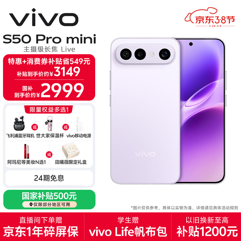 vivo S50 Pro mini 12GB+256GB灵感紫 主摄级长焦Live 第五代骁龙8 湿手秒开超声波指纹2.0 AI拍照手机