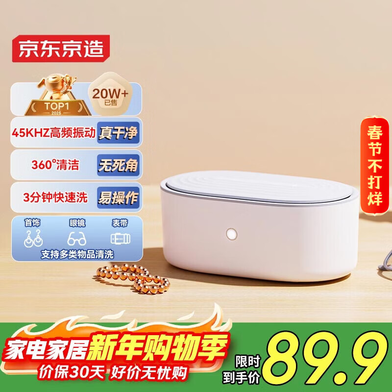 京东京造超声波清洗机 超声波眼镜清洗机 首饰表带假牙牙套手表清洗机 全自动350ml容量家用便携 U1