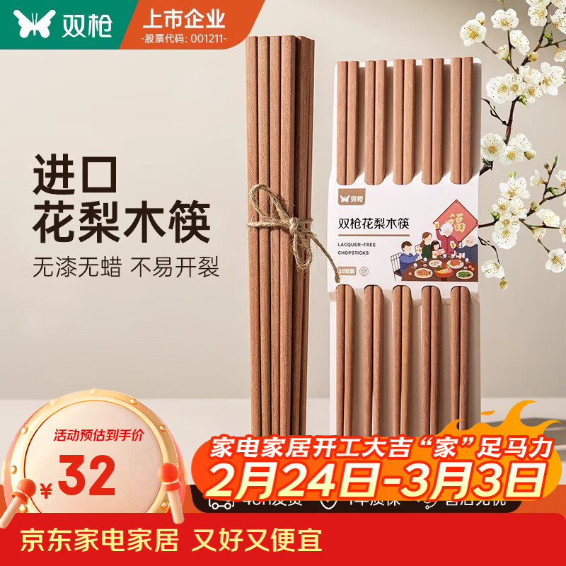 双枪非洲进口高档花梨木筷2024新款家用木筷子无漆无蜡原木筷实木筷 【活动款】花梨木筷10双装