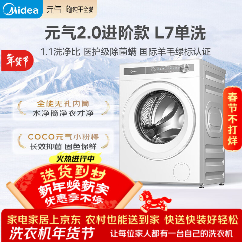 美的(Midea)元气2.0 滚筒洗衣机全自动 10公斤 纯平全嵌 除菌除螨 MG10L7PRO 以旧换新 国家补贴 京东自营