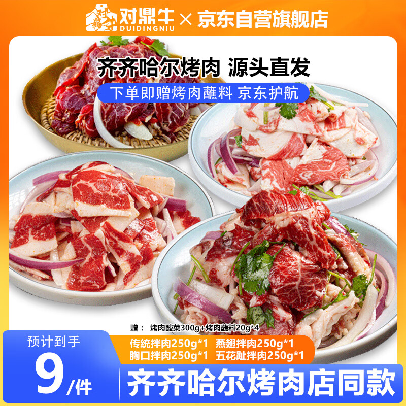 对鼎牛齐齐哈尔烤肉四种拌肉组合2斤生鲜牛肉烧烤食材 源头直发