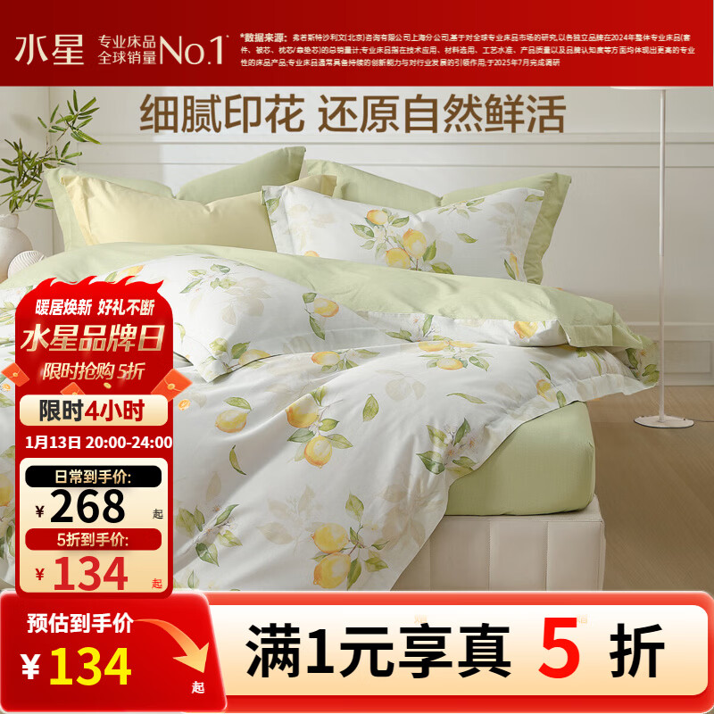 水星家纺被套被罩单件 100%纯棉阳光全棉舒适面料家用宿舍被罩床上用品 【100%棉&A类标准】被套-柠语 200cm×230cm
