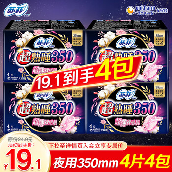 苏菲卫生巾女日用230夜用290mm棉柔卫生棉套装整箱姨妈巾日夜组合4包 【夜用350mm】4包