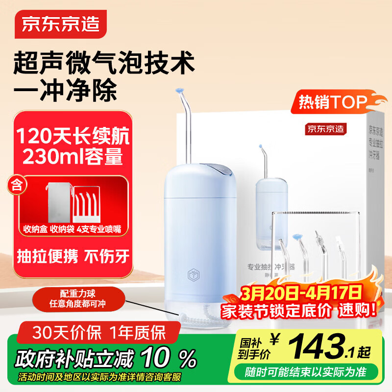 京东京造专业抽拉冲牙器便携式蓝 4喷嘴收纳盒洗牙器水牙线洁牙器牙齿冲洗器正畸预防牙结石生日礼物送男女