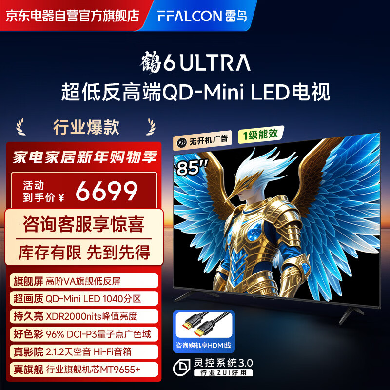 FFALCON雷鸟电视 85鹤6 Ultra 25款(PLUS版) 85英寸QD-MiniLED高阶VA 家电电视85S595C Ultra-A