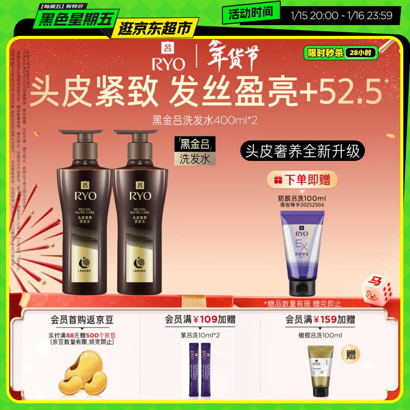 吕(Ryo)黑金吕洗发水400ml*2 舒缓头皮滋养修护黑灵芝【黑色星期五】