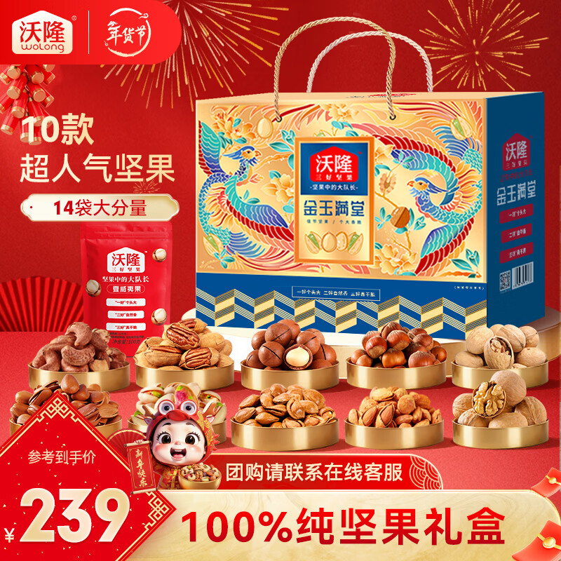 沃隆高端坚果礼盒每日坚果炒货休闲零食年货送礼零食大礼包团购 【14袋纯坚果】金玉满堂2.4kg
