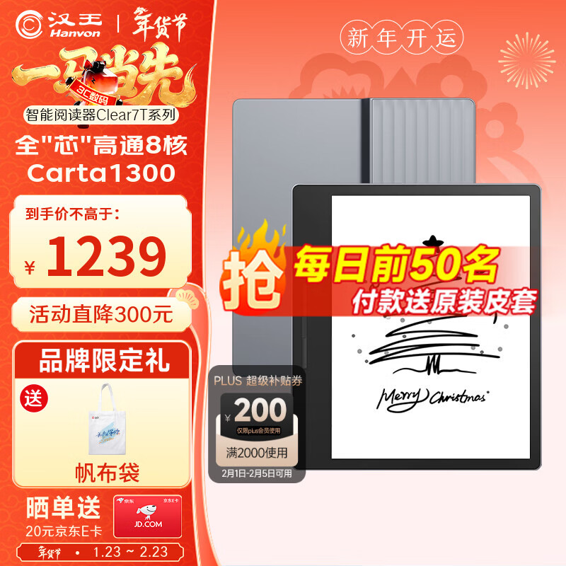 汉王(Hanvon)Clear7Turbo+电子书阅读器高通8核7英寸电纸书墨水屏电子笔记本便携阅读办公本平板电脑Carta1300