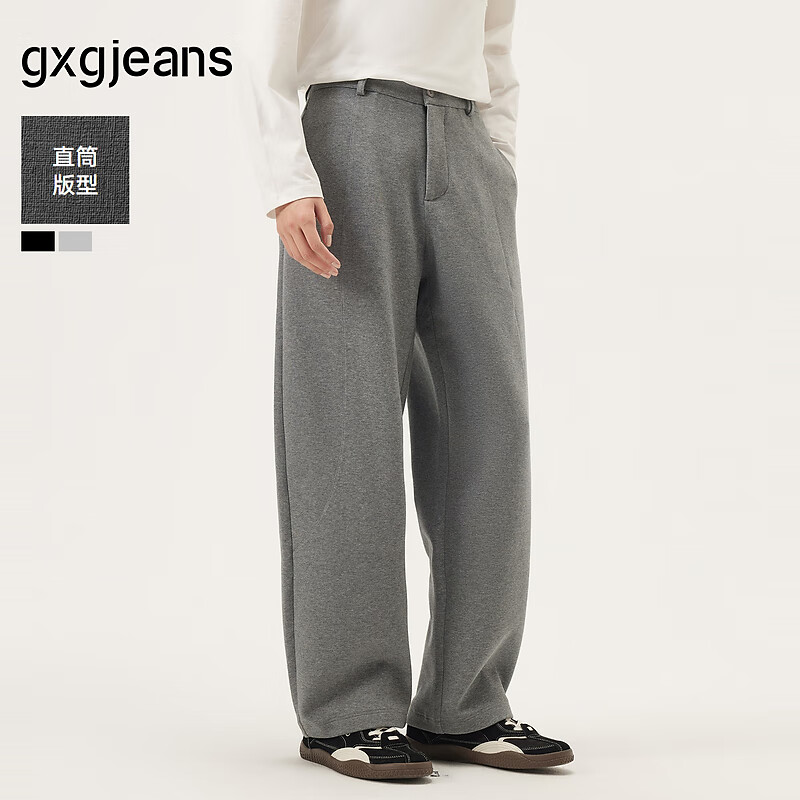 gxg.jeans男装 黑色基础通勤休闲长裤宽松直筒男士 25秋新品 灰色 XL (180) -32码