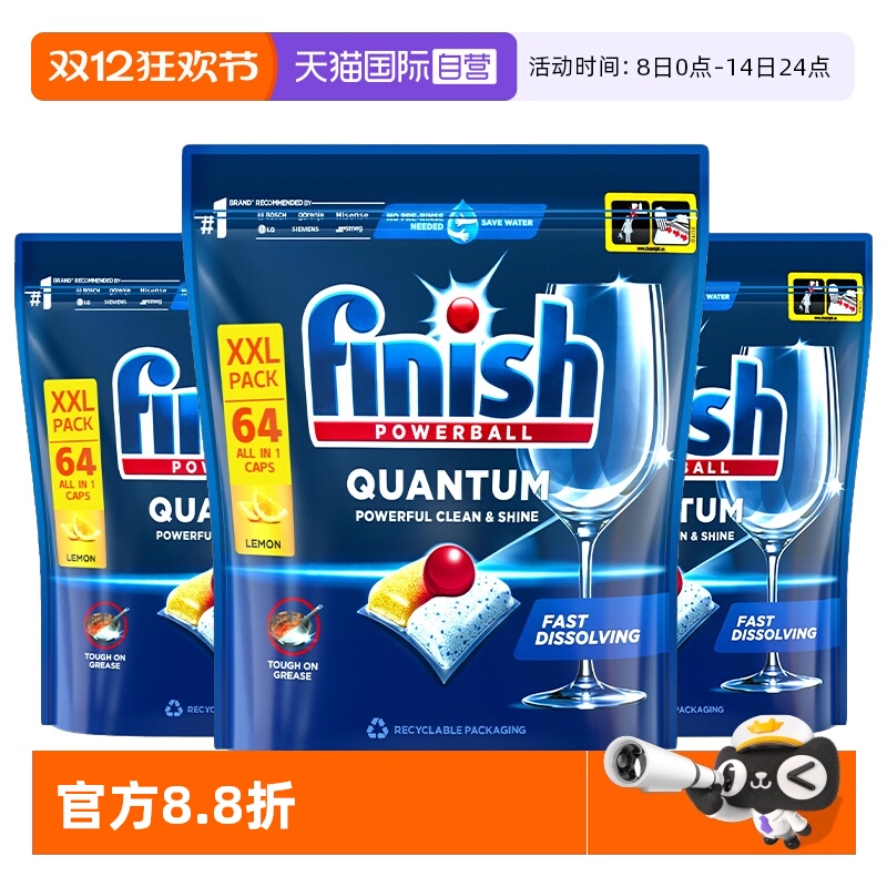 【自营】Finish 亮碟极净洗碗凝珠64颗柠檬味洗碗机专用洗涤剂3包