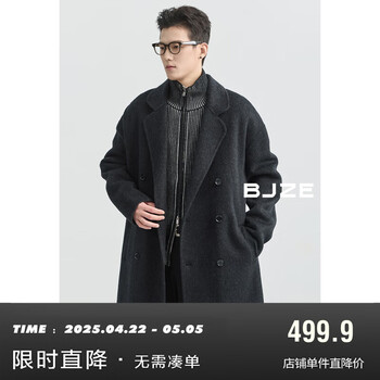 伯爵卓尔全羊毛双面呢大衣100%男中长款2024秋冬新款通勤男装外套 山岩灰 L 175