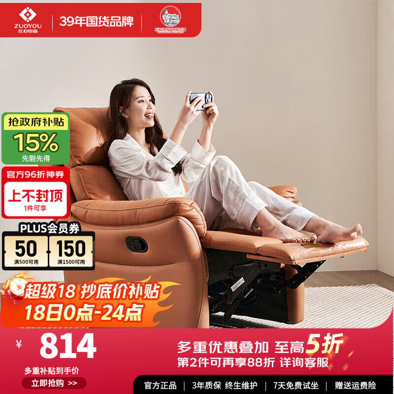 左右沙发功能皮感科技布单人沙发单椅DZY6010 暮光橙31055