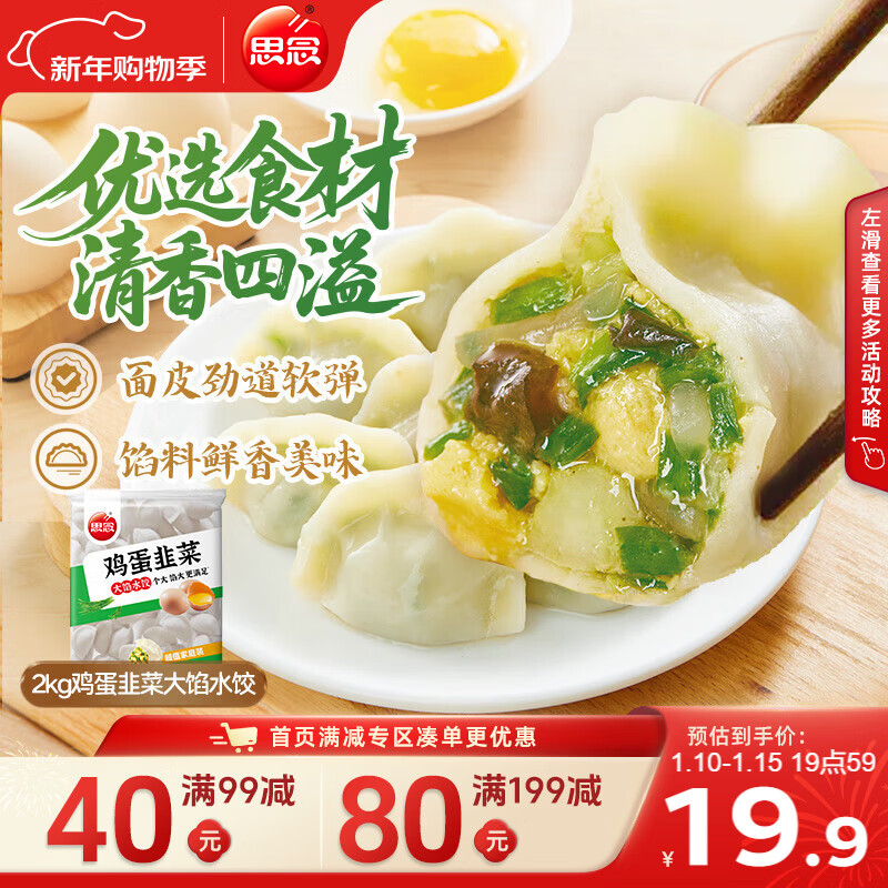 思念素水饺韭菜鸡蛋口味大馅水饺2kg 速冻饺子蒸饺煎饺食品年货送礼
