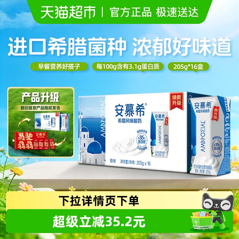 伊利安慕希希腊风味原味酸奶205g*16盒整箱营养早餐