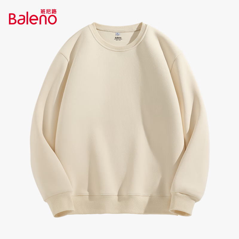 班尼路春秋季情侣重磅潮牌卫衣2025新款小个子男生显高显瘦休闲宽松外套 【圆领卫衣】-浅米#纯色 M