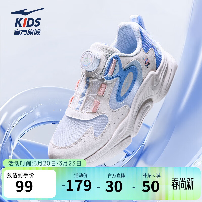 鸿星尔克儿童鞋男童跑鞋女童夏季新款中大童休闲儿童运动鞋 微晶白/甘紫蓝 -偏小1码 34