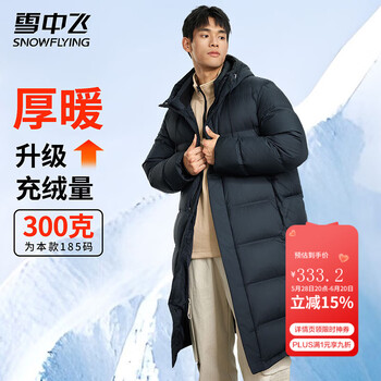 雪中飞男士羽绒服中长款冬季新款连帽运动休闲简约加厚保暖防寒羽绒外套 星耀黑 4XL (195)