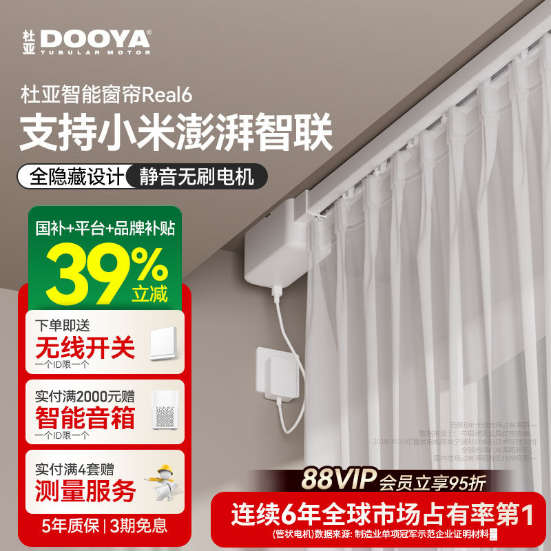 杜亚电动窗帘轨道智能Real6语音控制静音已接入米家2025新款电机