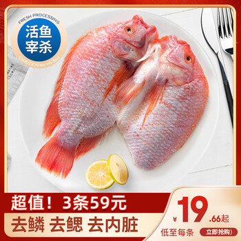 简鲜三去净膛彩虹斑400g/条 彩虹鲷红罗非鱼 400克*3条