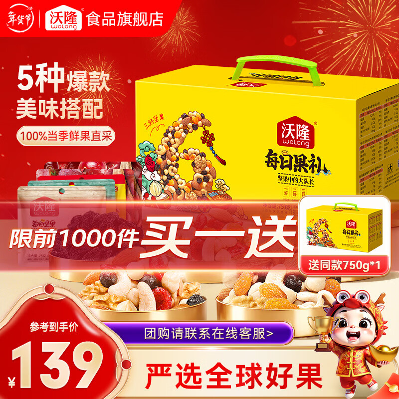 沃隆 每日坚果黄色升级版混合坚果750g送礼团购礼盒 每日果礼750g【5种爆款美味】