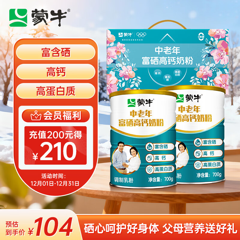 蒙牛富硒高钙中老年奶粉700g*2礼盒装 高蛋白 送礼送父母