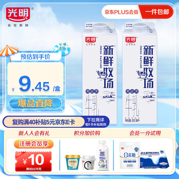 光明新鲜牧场3.4g高品质牛乳牛奶950ml*2盒 高温杀菌乳 家庭装