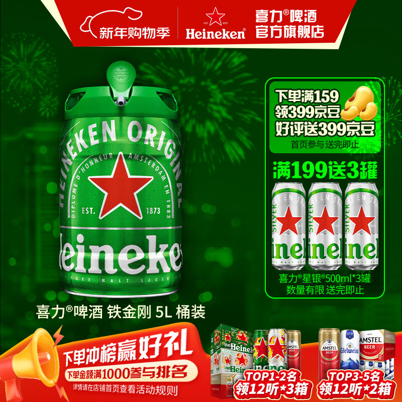 喜力啤酒 铁金刚 桶装啤酒 荷兰进口 官方正品 5L 1桶
