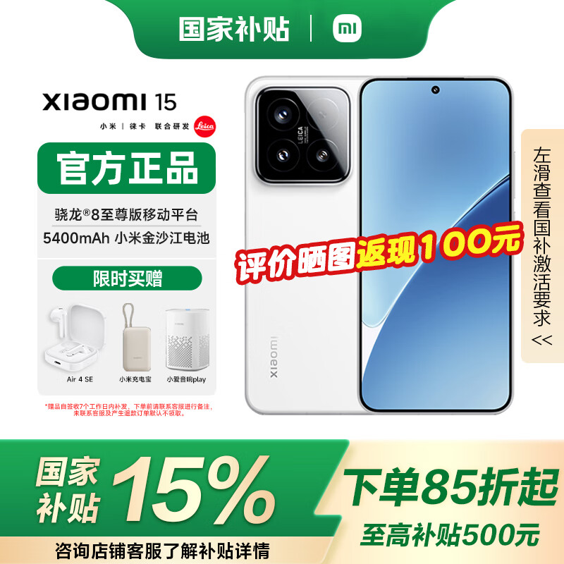 小米15【国家补贴】新品徕卡光学 Summilux高速镜头 骁龙8至尊版 5G小米手机 白色 12+256G