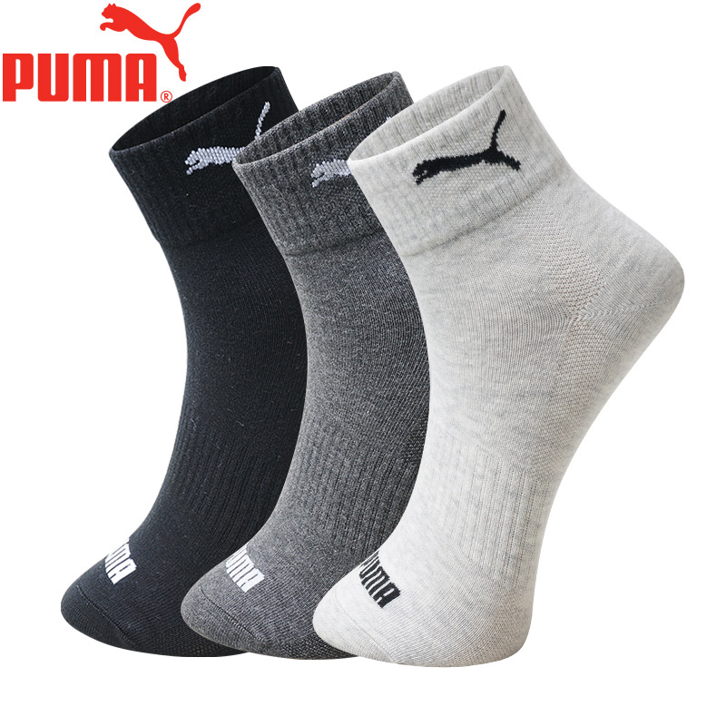 彪马袜子女士中筒袜四季款运动休闲款透气棉袜3双装 黑+深灰+浅灰 3双 均码 EU35-38(适合脚码35-39)