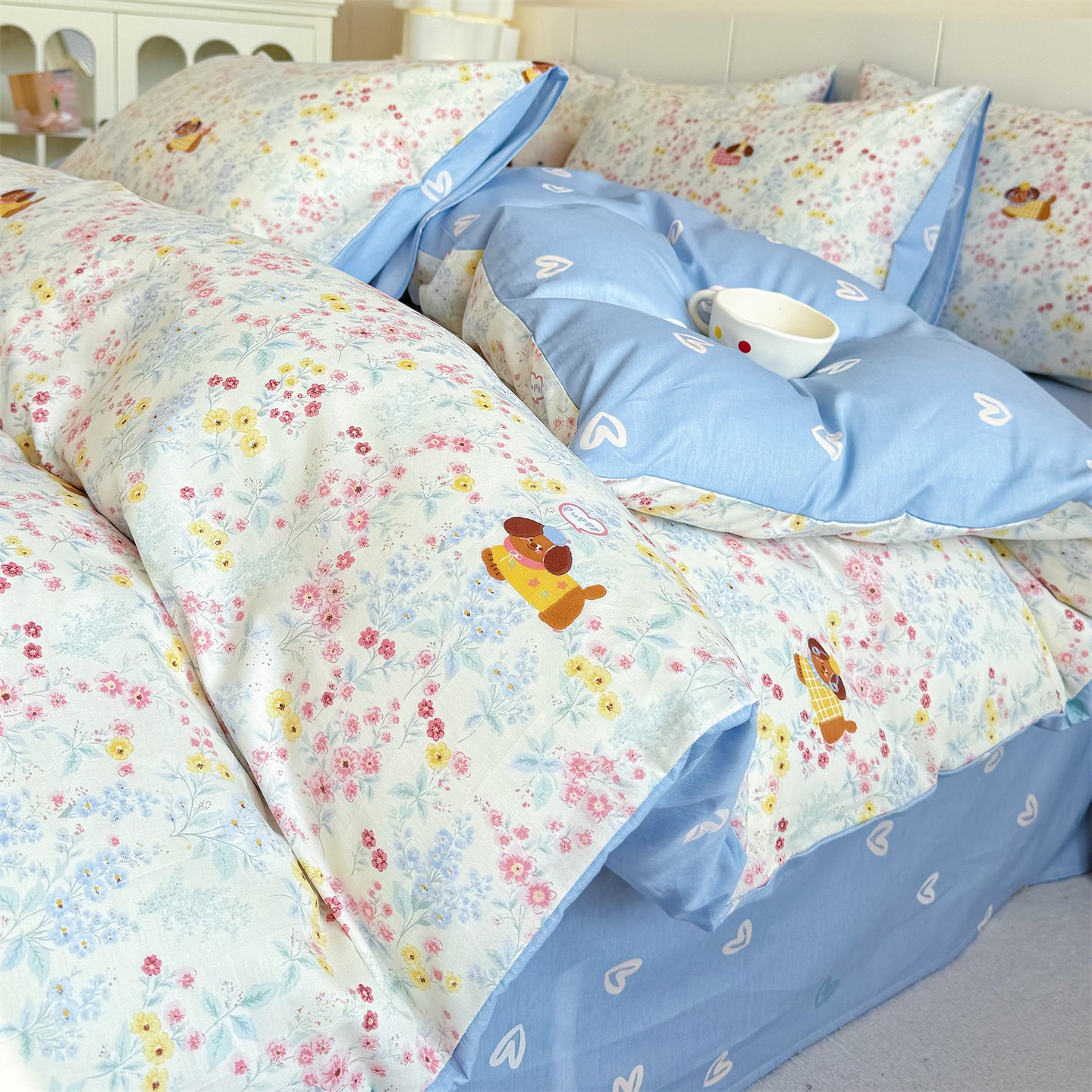 AIDLI100%新疆长绒棉夏凉被空调被印花可水洗机洗单双人薄被子被芯 清新小花-蓝 150x200cm