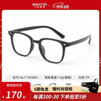 万新(WAN XIN) 近视眼镜防蓝光辐射非球面现片配眼镜框男女0-1500度配成品眼镜 TR90-全框-1908BK-黑色 1.60多屏防蓝光镜片(近视超薄)