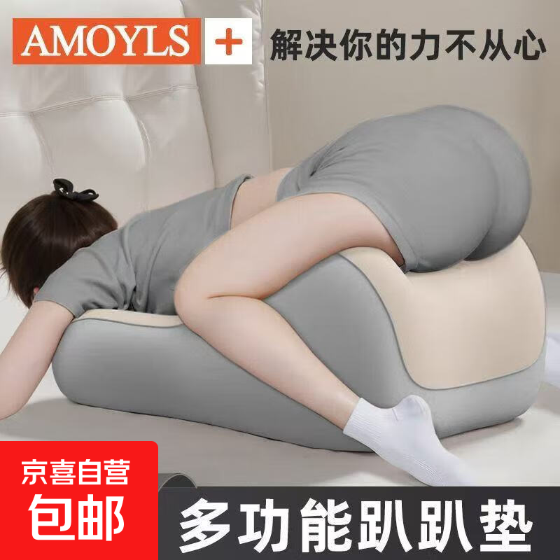 床头靠枕臀部垫高垫多功能看书靠垫玩手机神器屁股垫身体抬高垫 米灰拼色-贴合腰臀/加大加宽
