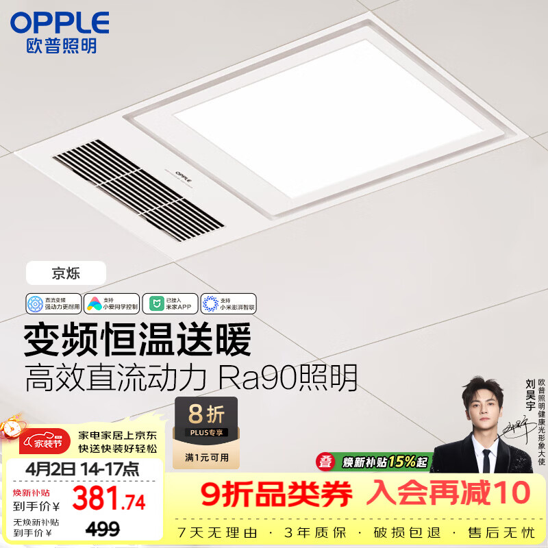 欧普照明(OPPLE)智能浴霸变频恒温系列浴室卫生间暖风照明排气一体集成 京烁