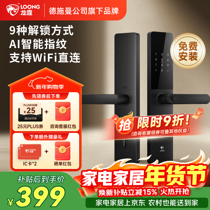 龙霆智能门锁电子锁指纹锁密码锁执手款防盗把手门锁T3W T3W
