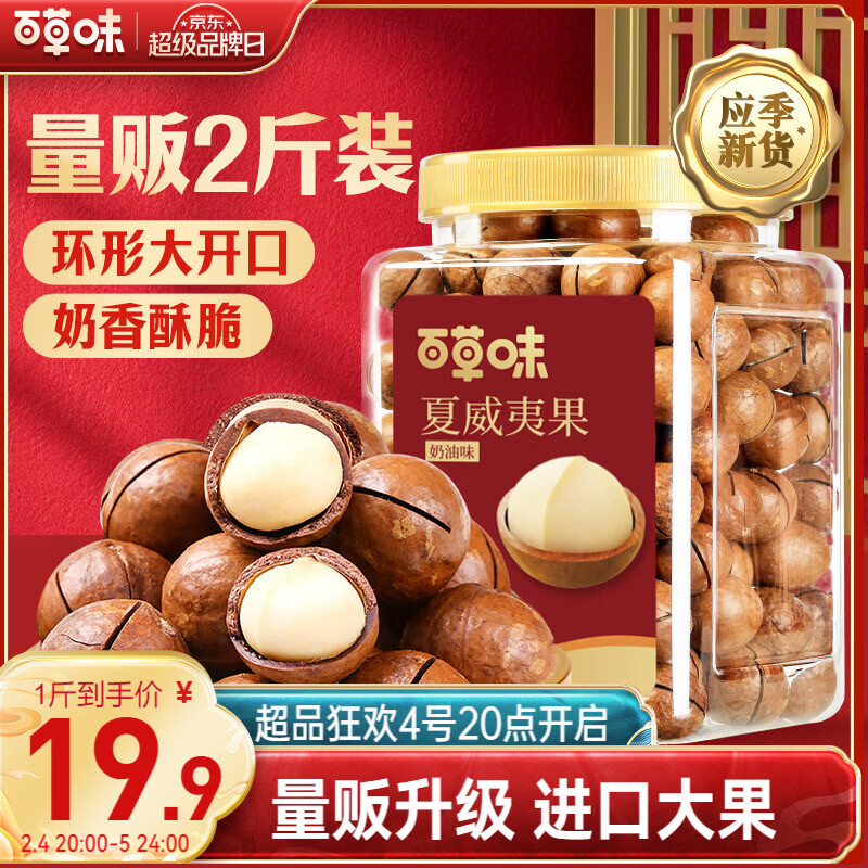 百草味夏威夷果奶油味1kg 坚果炒货干果每日坚果大果罐装休闲零食团购