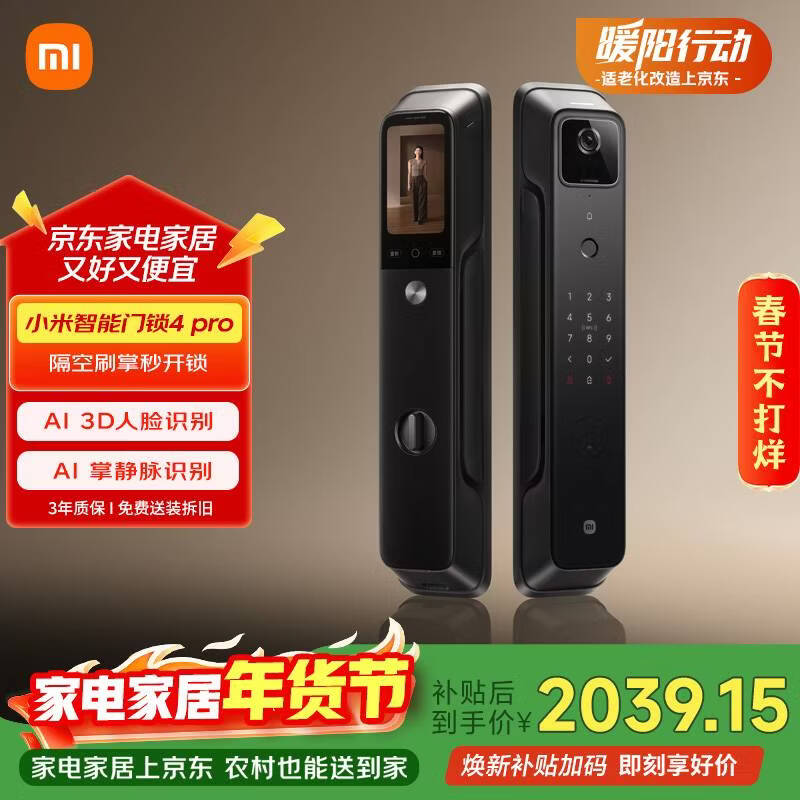 小米智能门锁4pro 掌脉锁人脸猫眼大屏智能联动电子锁密码锁防盗门锁
