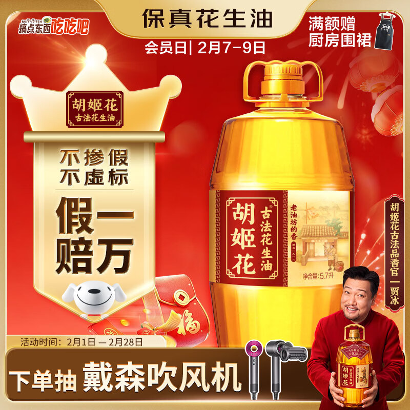 胡姬花 食用油【保真花生油】压榨 古法老油坊的香的花生油5.7L