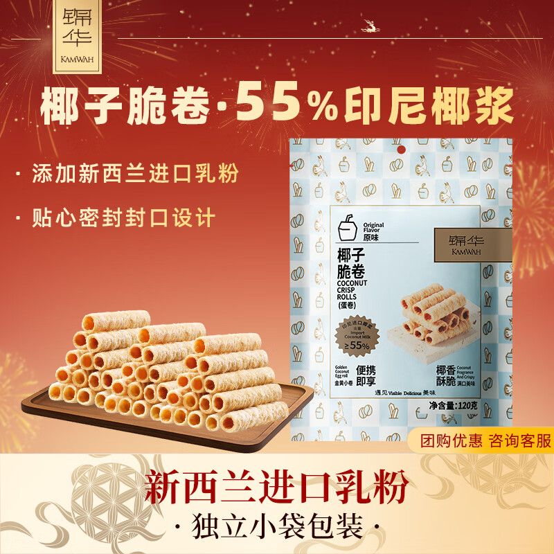 锦华椰子脆卷120g原味 饼干饼酥蛋卷休闲零食下午茶年货团购新春送礼