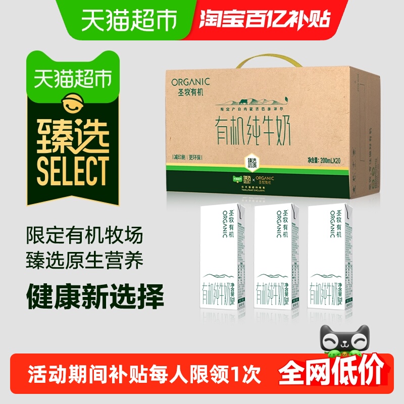 【臻选】圣牧有机纯牛奶200ml*20盒儿童早餐牛奶 下拉详情享优惠