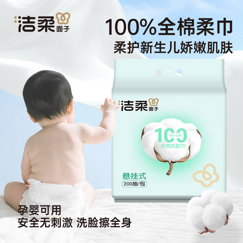 洁柔(C&S)全棉洗脸巾200抽一次性100%棉柔巾毛巾18*20CM【采销推荐】
