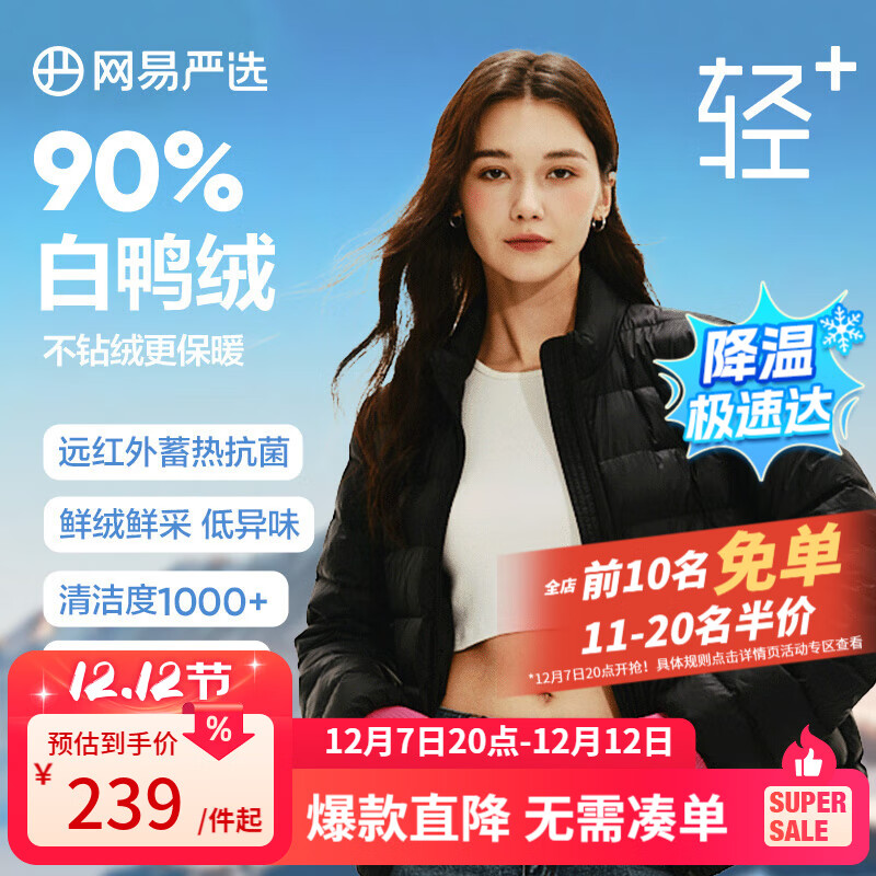 网易严选【断码清仓】24秋冬90白鸭绒羽绒服防风保暖抗静电 立领款-石墨黑 XL
