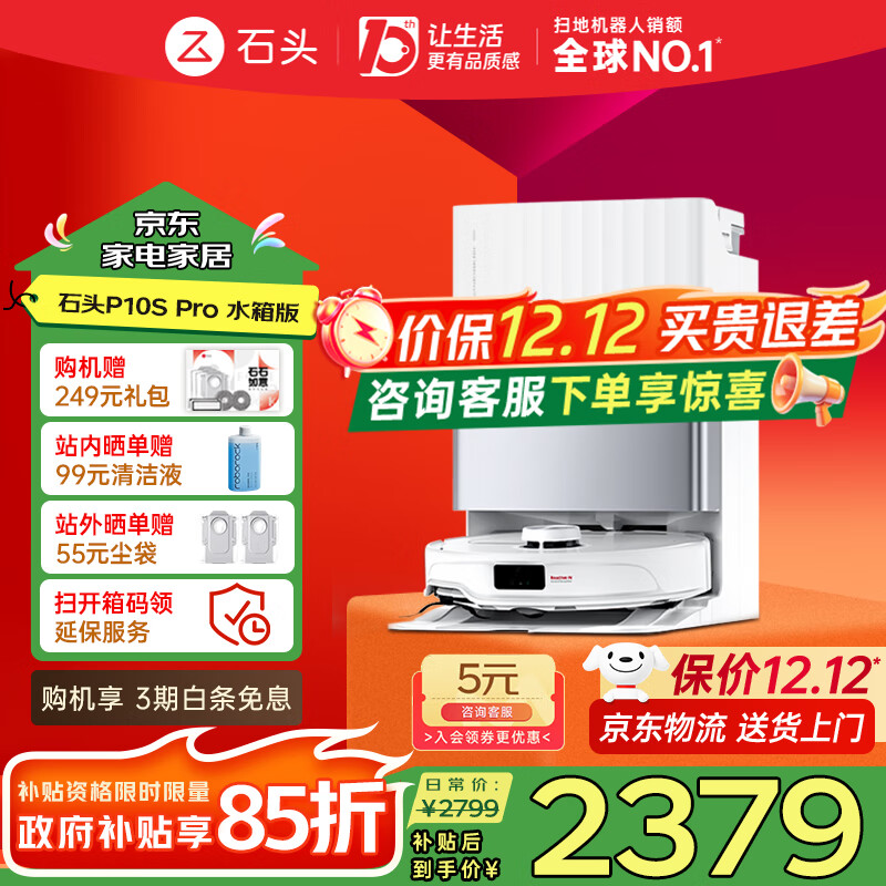 石头(roborock)P10S Pro 扫地机器人扫拖一体自动清洗全自动上下水集尘热水洗拖布免洗 擦地拖地机器人 P10S Pro水箱版