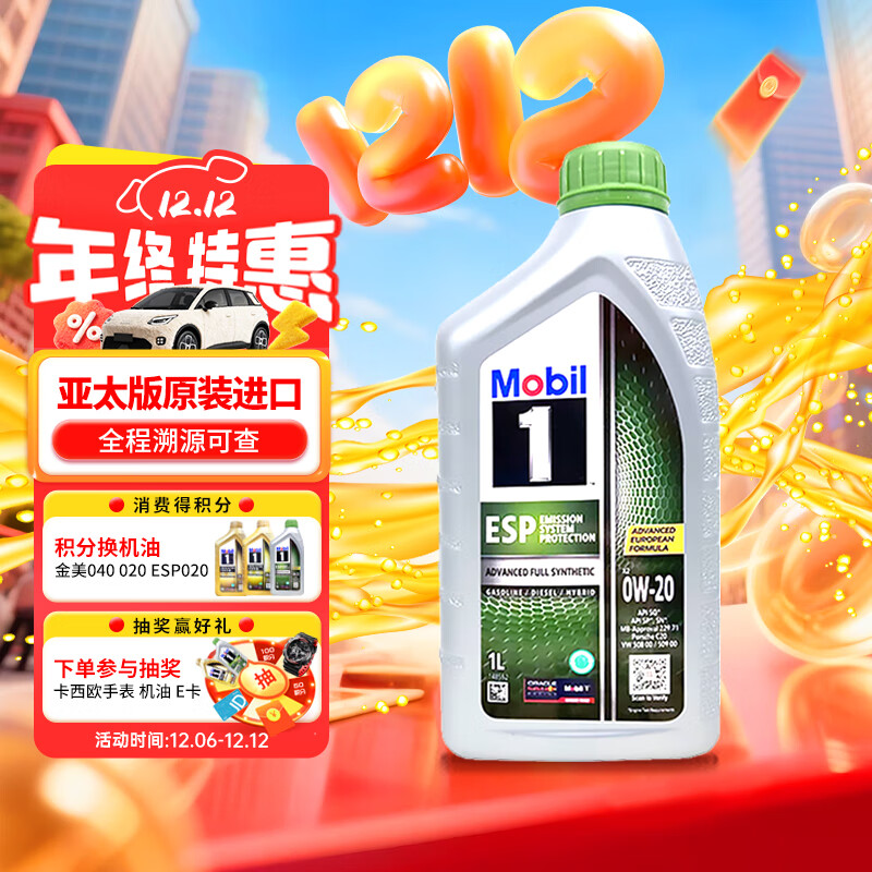 美孚(Mobil)1号 全合成机油 劲擎表现 ESP 0W-20 C6级 1L 新加坡原装进口
