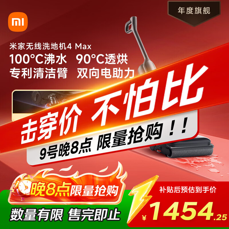 米家【年度爆款单品】小米洗地机4Max 创新智能0贴边 23kPa吸力双向助力扫地吸拖一体躺平防缠洗地机