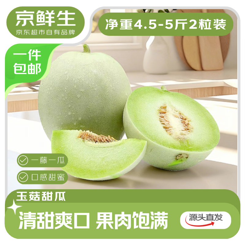 京鲜生 海南玉菇甜瓜 净重4.5-5斤2粒装 源头直发包邮