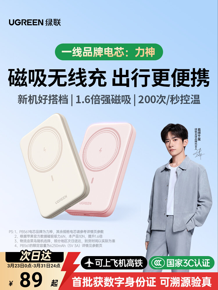 【充电宝3C认证可上飞机】绿联2026新款磁吸无线充电宝适用苹果17专用快充iPhone16超薄便携magsafe官方正品