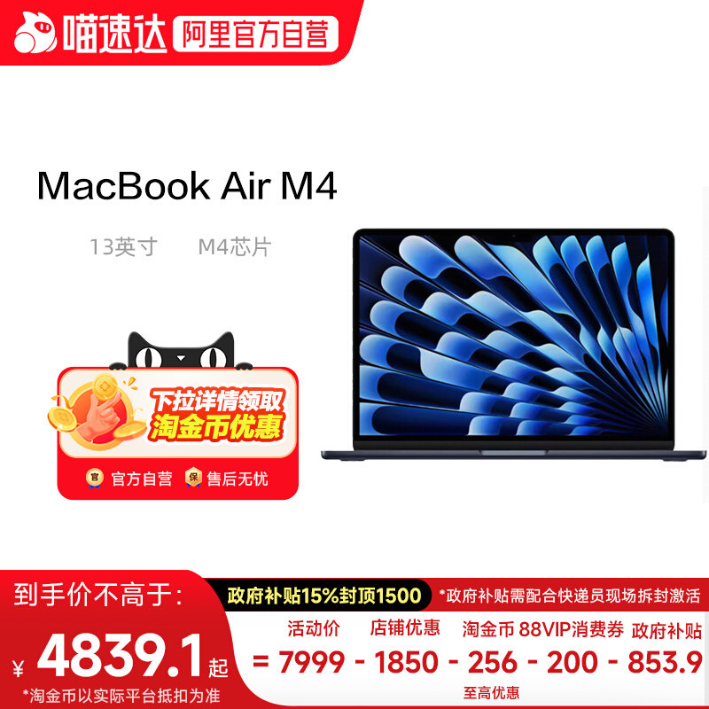 【自营】Apple/苹果MacBook Air 13英寸 M4芯片 笔记本电脑 25年新品国行正品政府补贴