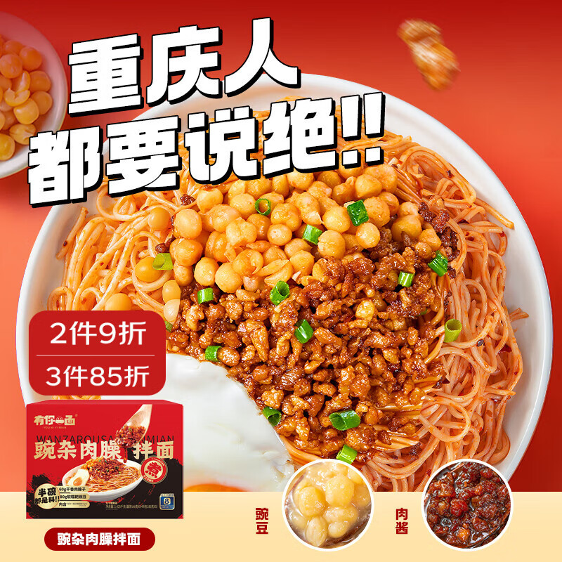 有你一面豌杂肉臊拌面1.425kg箱装 加料加面 重庆小面杂酱面条速食早餐
