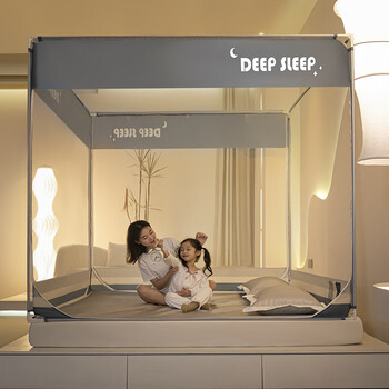 轩蓝仕A类 全封闭床笠款全包防摔落坐床式拉链蚊帐 不锈钢烤漆支架帐子 深睡眠-MZ 床笠款150×200×高170组装支架