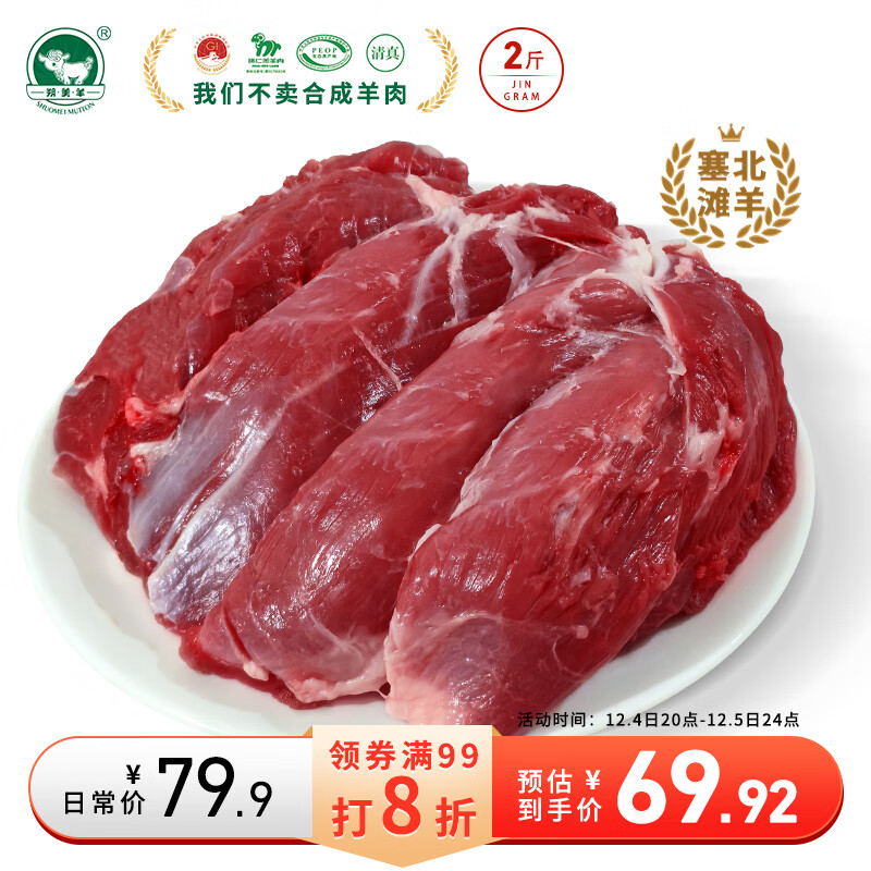 朔美羊塞北滩羊盐碱地羔羊原切去骨羊后腿肉2斤 生鲜炖煮烧烤 源头直发